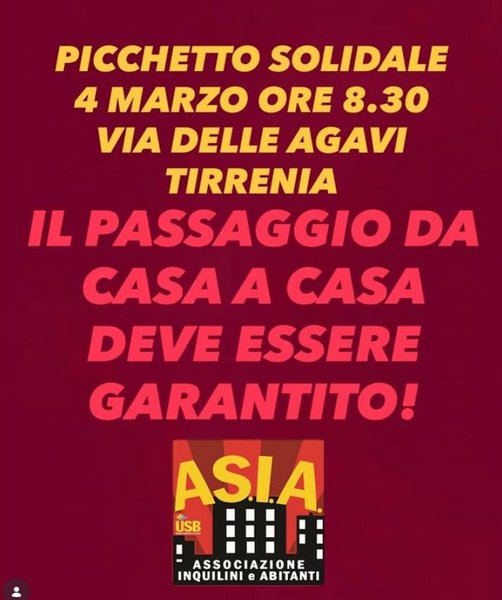 Saremo quindi a fianco della famiglia affinché prima di lasciare l’alloggio le venga assegnata la casa d’emergenza per la quale è in attesa da tempo!